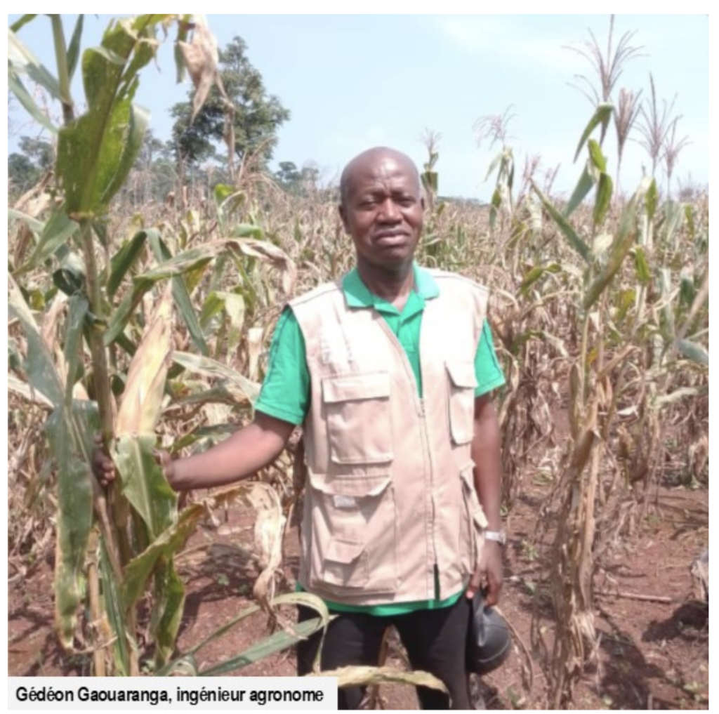 Gédéon Gaouaranga : Ce partenariat ne date pas de très longtemps, ce n’est qu’au cours de cette campagne que nous avons commencé ce partenariat, et donc avec le CICR, nous avons signé un partenariat pour produire au total 6 hectares dont 4 pour le maïs et 2 hectares pour le niébé. Le maïs, c’est ce que vous voyez en ce moment, les semis ont été étalés dans le temps, les premiers sont déjà en maturité, nous sommes déjà en train de récolter. Mais les derniers semis sont encore en parcelle, en maturation. En dehors de ça, j’ai ouvert 2 hectares de maïs de la même variété pour en cas de quoi compenser aux aléas et c’est déjà même en maturation.